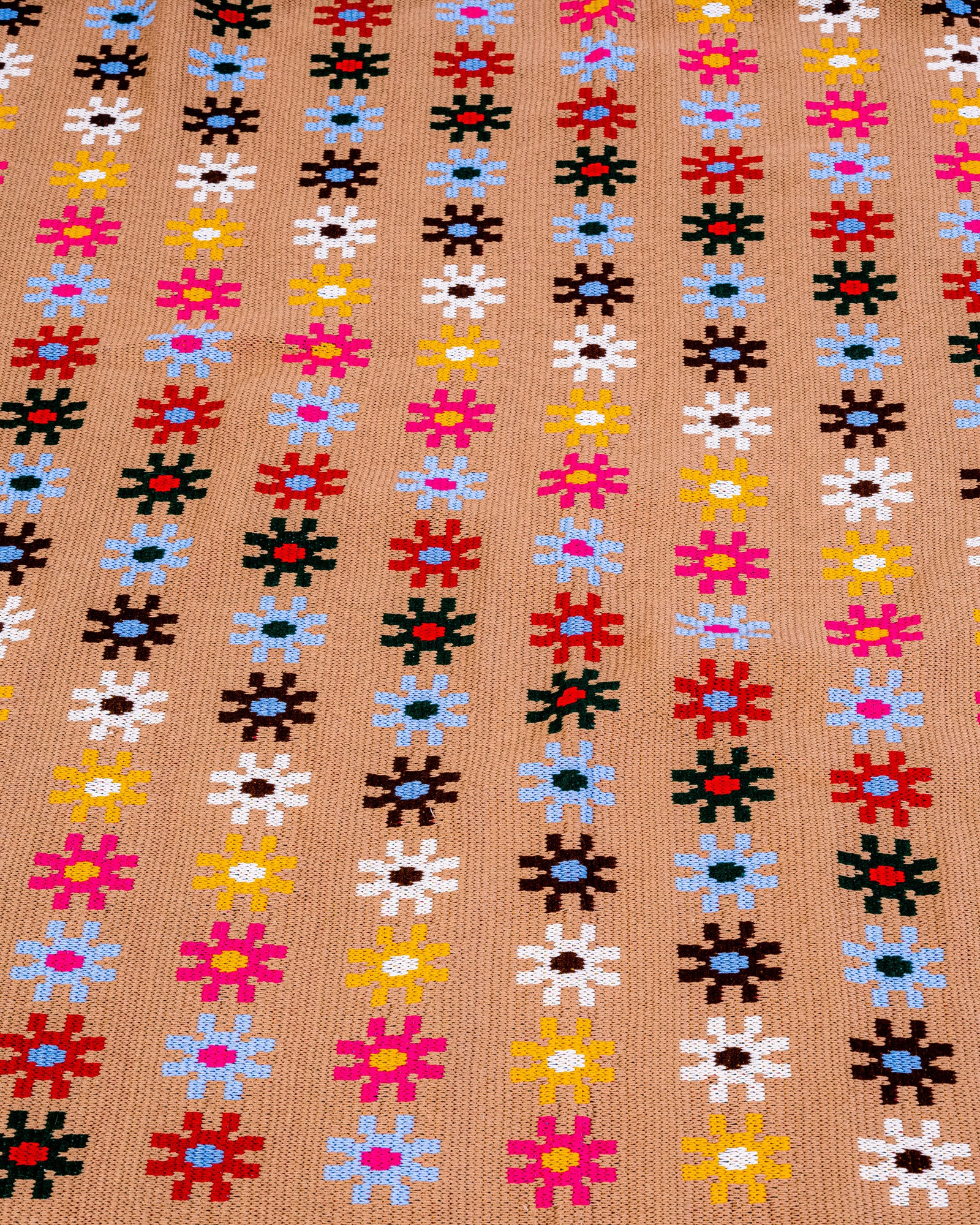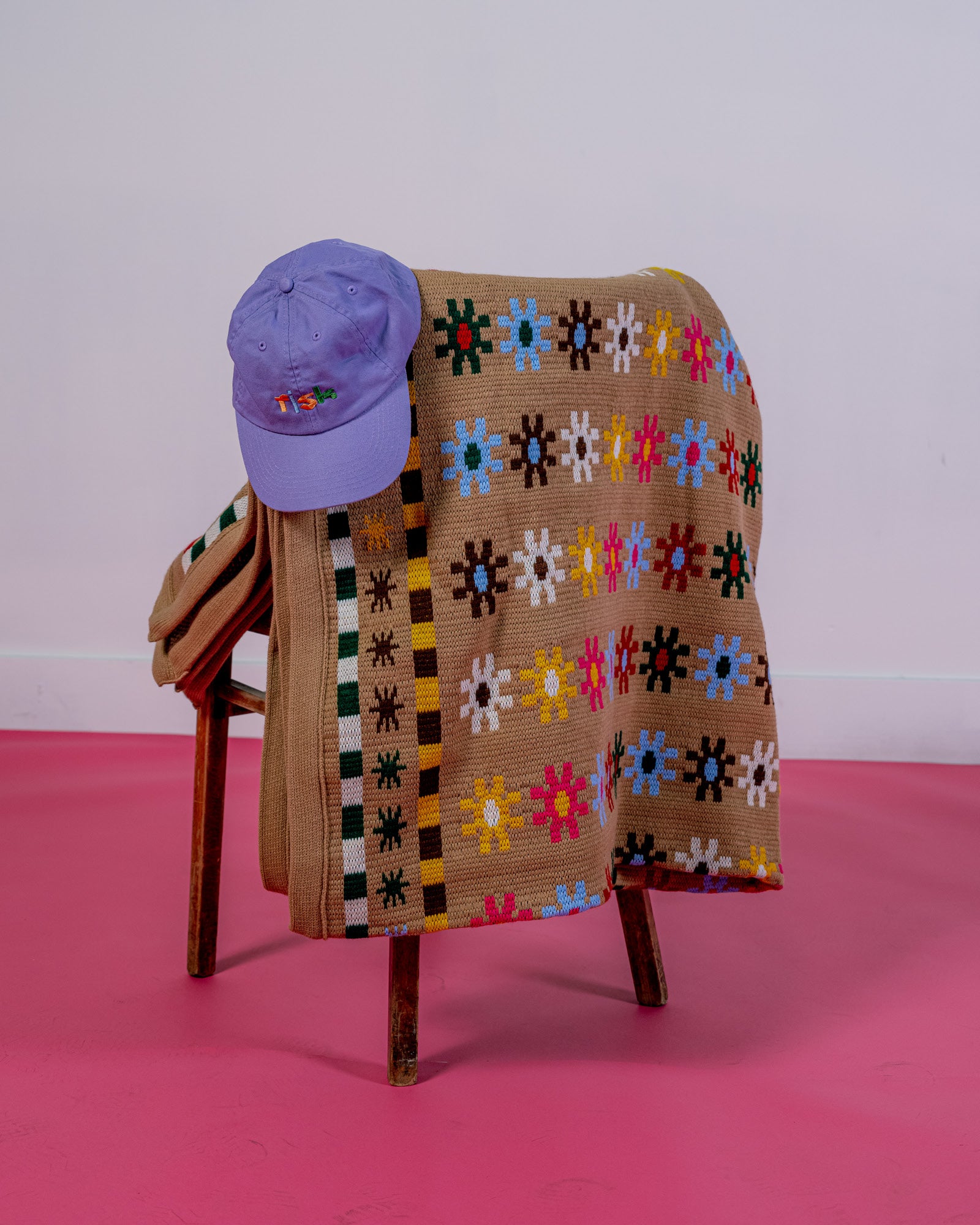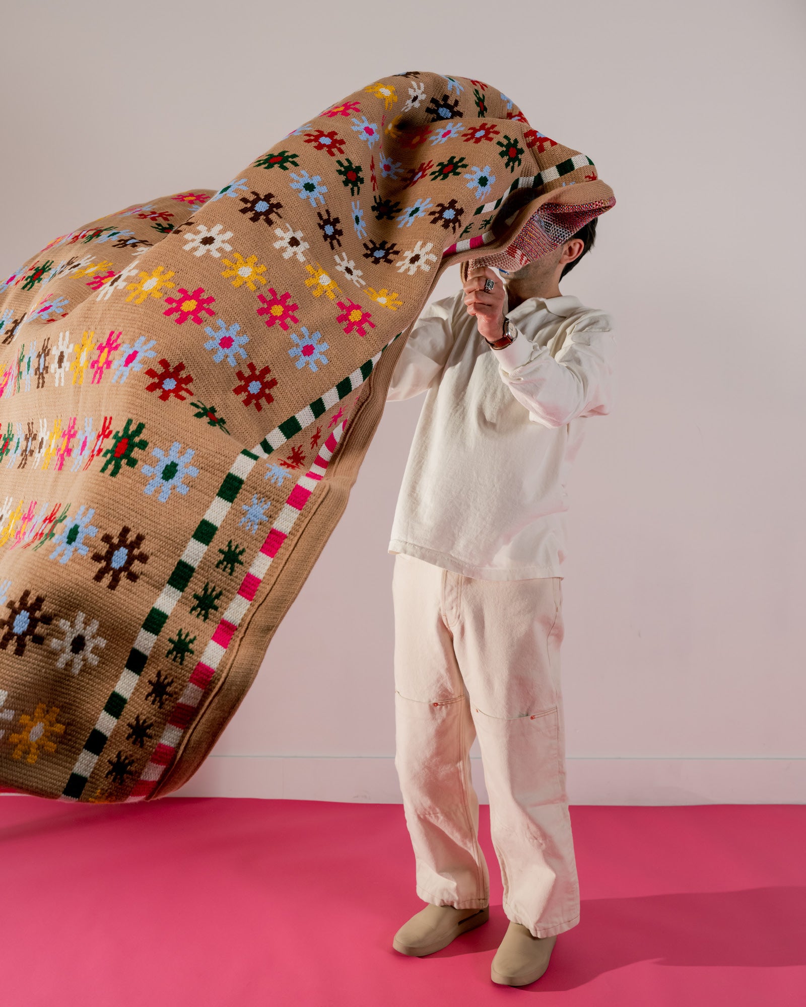 About the design: A few times a year, my father takes the long trek to visit family in his home country of Iran. Upon his return he brings me back beautiful textiles, ceramics and metal work from various bazaars across the region. This blanket was inspired by one of my favorite rugs he has brought back to date. It’s been a dream of mine to work with textile makers in Iran and create contemporary rugs. Unfortunately, this isn’t possible given the political climate so I created this bootleg blanket inspired by that rug as a way to capture this important cultural tradition and personal experience. -Bijan
