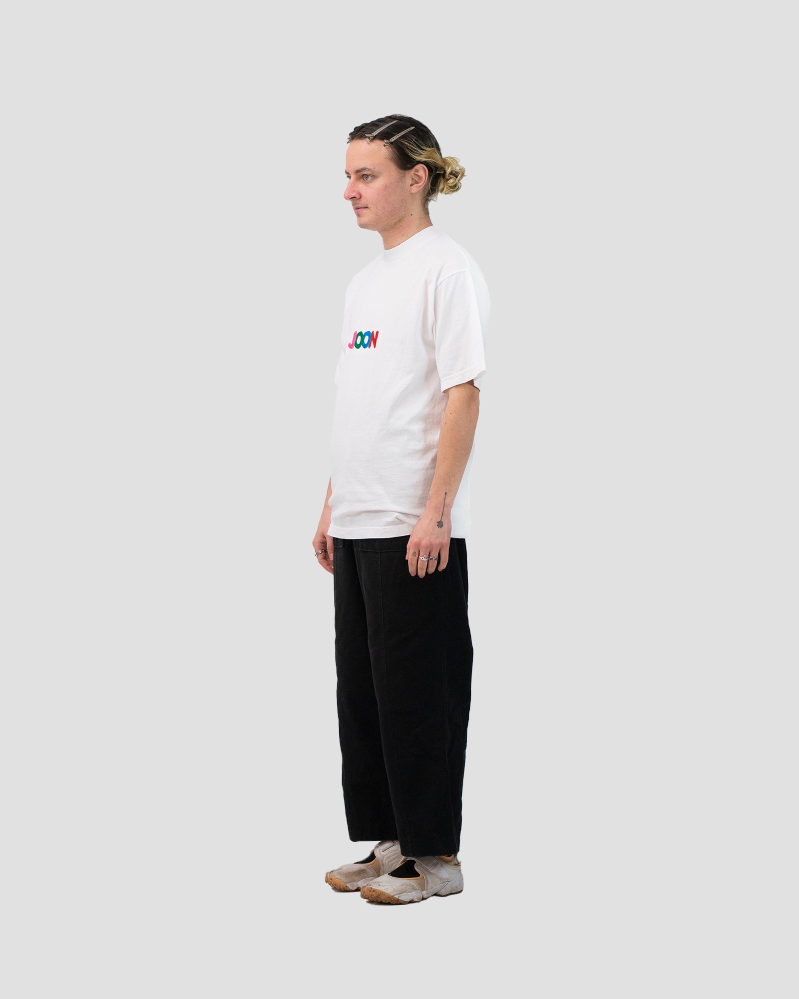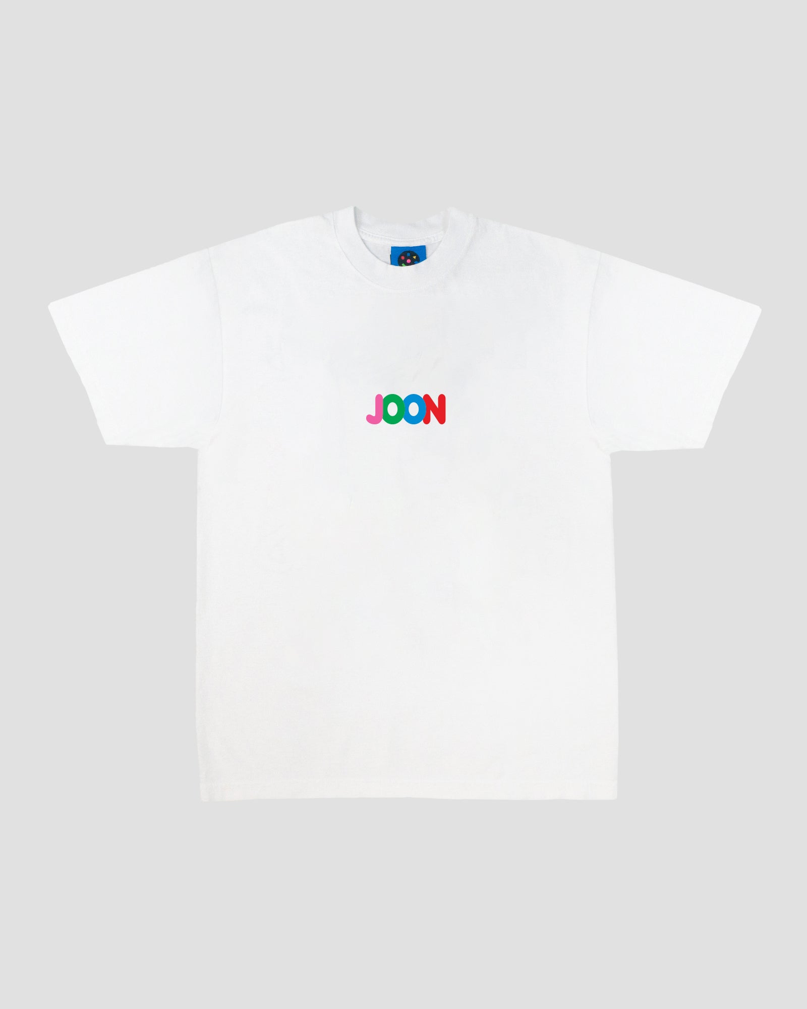 JOON logo t-shirt with 4-color embroidery.6.5oz Ringspun Cotton Short Sleeve Shirt in Daisy, Made in LA. Embroidered in Portland.