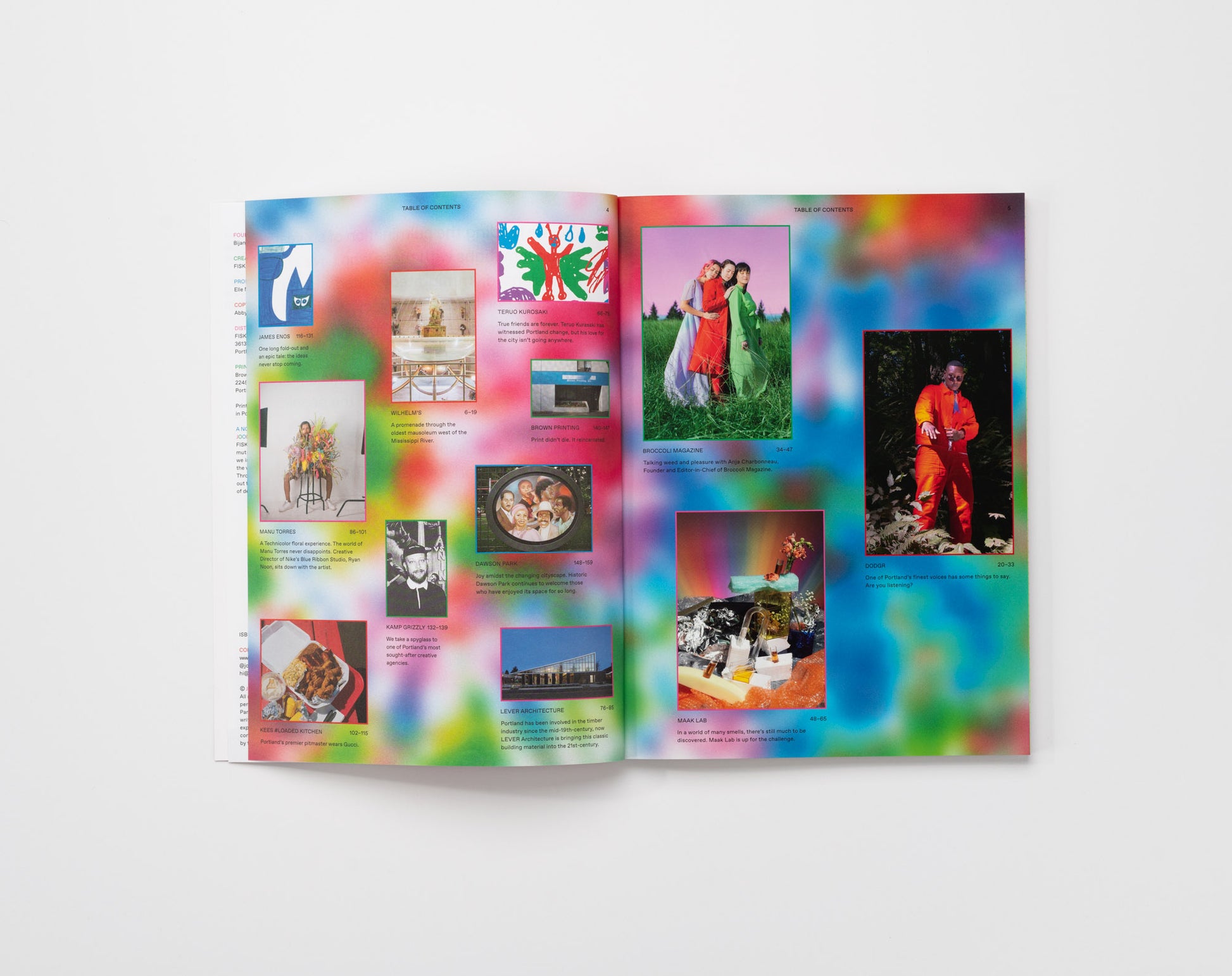 Issue 01 features Dodgr, Maak Lab, Broccoli Magazine, Wilhelm’s Memorial Home, Teruo Kurosaki, Lever Architecture, Manu Torres, Kee’s #Loaded Kitchen, James Enos, Kamp Grizzly, Brown Printing and Dawson Park.