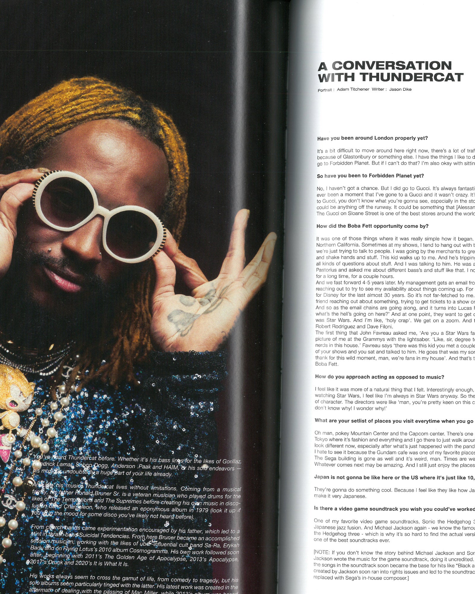 This issue is themed 'BURN MY SHADOW', on the two covers are musician Thundercat and actor Sung Kang.