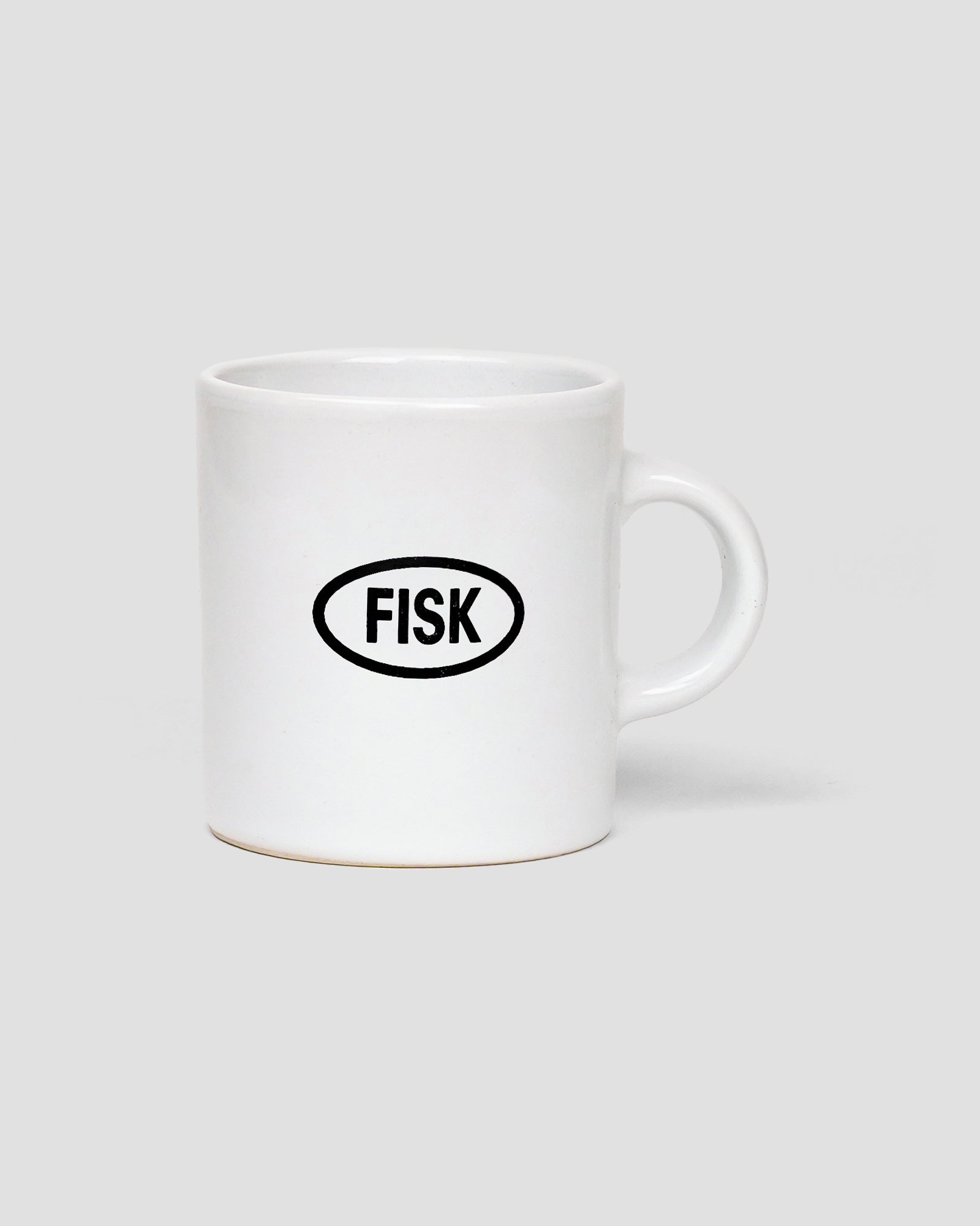 3oz ceramic espresso cup. Features FISK logo printing on front side. Imported, logo applied in U.S.A.
